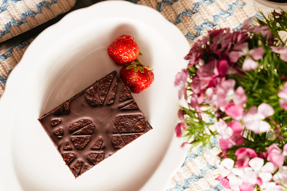 The most decadent fudge topped with a generous drizzle of delicious chocolate ganache. You’ll never believe it’s plant based and flourless.